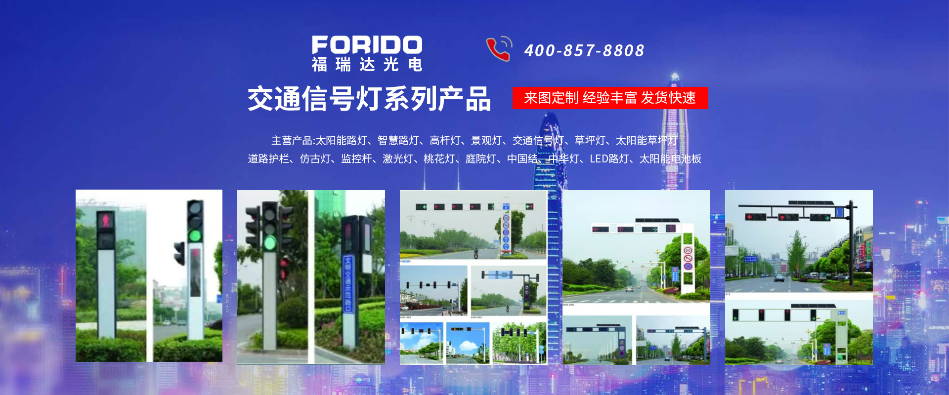 揚州福瑞達(dá)光電科技有限公司位于淮左名都?xì)v史文化名城、中國路燈制造基地?fù)P州市北郊菱塘工業(yè)園,公司占地面積76000平方米,注冊資金10518萬元,擁有高級技術(shù)嫻熟的員工280多人,擁有大型折彎機、激光切割、數(shù)控注塑機、壓鑄機、自動埋弧焊、氣焊、彩色粉末靜電噴塑等大型自動化設(shè)備,我公司是一家集設(shè)計、研發(fā)、生產(chǎn)、銷售、施工安裝服務(wù)為一體的戶外交通照明產(chǎn)品制造商,主要生產(chǎn)智慧路燈、太陽能路燈、LED路燈、高桿燈、景觀燈、交通信號燈、交通標(biāo)志牌、通信鐵塔、路跨鋼結(jié)構(gòu)、公交站臺、太陽能光伏組件、景點亮化、樓宇亮化工程的設(shè)計施工等。公司秉承開拓創(chuàng)新、銳意進(jìn)取、精誠服務(wù)的企業(yè)精神,堅持以“誠信為本、技術(shù)為先、服務(wù)是金”的合作理念,我們憑借先進(jìn)的制造工藝、優(yōu)質(zhì)的產(chǎn)品質(zhì)量、合理的市場價格和完善的售后服務(wù)贏得了廣闊的市場和客戶的信賴。  我公司已通過ISO9001質(zhì)量體系認(rèn)證、ISO14001環(huán)境管理體認(rèn)證,CQC產(chǎn)品認(rèn)證,中國節(jié)能產(chǎn)品認(rèn)證,通過“CCC”強制性產(chǎn)品認(rèn)證,具有市政總承包,照明,交安,設(shè)計等資質(zhì)···